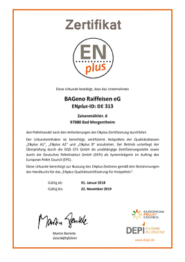 Unsere Holzpellets erfüllen die Anforderungen der internationalen Norm ISO 17225-2 und sind nach dem ENplus-Zertifizierungsprogramm geprüft.